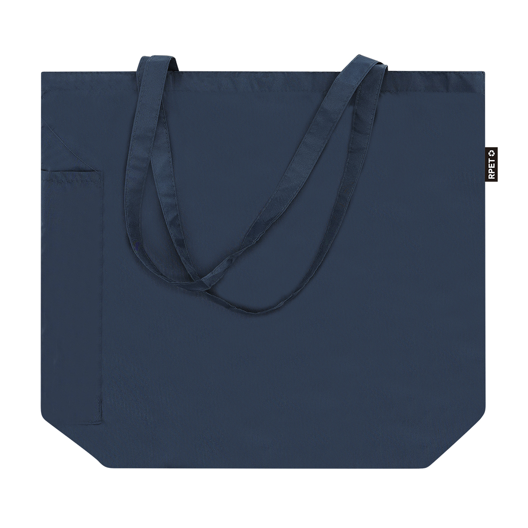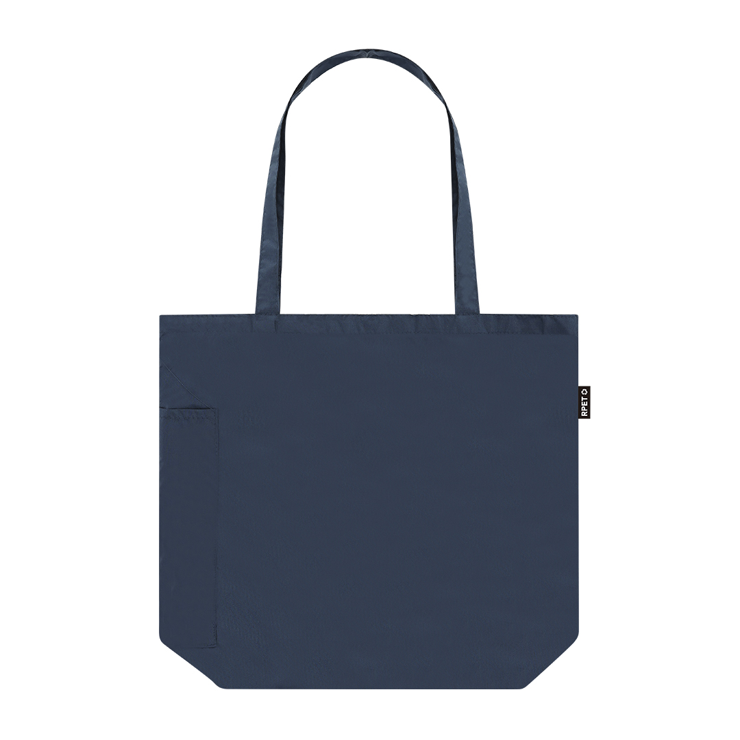 Bolsa fabricada en RPET Pongee 190T, con bolsillo en el lateral. Resistente a la lluvia. Con cremallera metalizada para guardar el paraguas y mantener seco el contenido de la bolsa. Ofrece una solución práctica y versátil para los días de lluvia, cuando no se está utilizando se enrolla actuando como funda para el paraguas. Con etiqueta distintiva RPET.